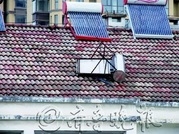 本报8月12日讯(见习记者 谭正正) 12日上午,有市民反映,魏鑫嘉园小区一楼顶的太阳能被吹到楼顶檐边,给周围居民安全出入带来隐患。记者经过居委会联系到太阳能的主人任先生,他承诺及时回家并进行拆除。 12日上午,记者来到魏鑫嘉园,逐一排查,发现10号楼楼顶上面的太阳能歪倒在楼顶檐边,在该楼对面楼的4层能够仔细地看到太阳能几乎滑到了楼顶底部,支架已经锈迹斑斑。在10号楼第二单元居户中,记者敲门询问,最终确定太阳能的主人,不过主人不在家。 据附近的居民称,由于风雨天气,太阳能早在前几天就已经歪了,不过依旧固定在屋顶上,昨晚的大风把太阳能吹成了这样。“这样很危险,说不上什么时候就会掉下来砸着人,我们这些天也是无法联系到主人。”住在三单元的一位居民说。 随后记者找到居委会,通过住户信息登记表找到了户主任先生的联系电话。任先生说太阳能早在两年前就已经坏掉了,没有修理,一直弃用。因为太阳能里早就没有水了,所以很轻,风比较容易吹动。再加上常年的风吹日晒,用于固定的材料也老化了。由于任先生早出晚归,就一直没注意太阳能。任先生说:“这的确很危险,砸了人,对别人对自己都不好,我下班后立刻回家进行处理。”