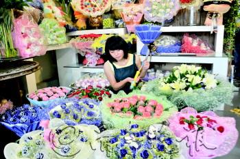 12日,在张店西二路一鲜花店内,工作人员正忙着整理顾客为七夕节预定的鲜花。七夕到来,鲜花、巧克力等与浪漫有关的商品火起来。现在,七夕节已经被多数商家和年轻人当成情人节来过。但事实上,传统七夕节并非情人节,而是女子祈求智慧和巧艺的节日。商家纷纷借此促销也是面对竞争的无奈选择。