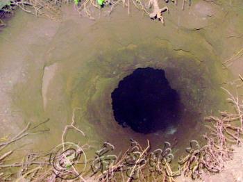 | “阁老墓”上方被掘的大坑。 本报记者 吴金彪 摄 |