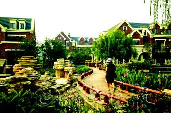 蜿蜒栈桥,隔开两畔湖,通向翠柳与美墅间,漫步其上,享乐其中。
