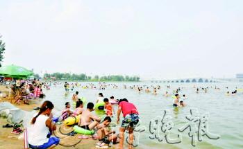 下湖纳凉 14日,天气炎热,在东昌湖沙滩浴场,有很多市民戏水纳凉。据了解,每天有五六万人次在浴场下湖。 本报记者 邹俊美 摄