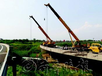 14日13时40分,一辆油罐车从同三高速转青兰高速的青岛方向匝道处冲出高速护栏,从十米高处跌落,车头和罐体分离,所幸罐内未装载化学危险品,驾驶员因脊椎受伤被送往医院救治。 本报记者 潘旭业 本报通讯员 李希 摄影报道