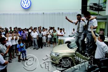 本报8月14日讯(见习记者 隋忠伟) 8月11日晚7点,在上海大众汽车日照乾通4S举办了“全新桑塔纳七夕团购峰会——日照站”活动。市场部林经理告诉记者,团购会上有抽奖环节以及免费餐会,进店还有精美礼品赠送,团购会结束后,销量大大超过了预期目标。 记者在现场看到,红毯、旗帜、舞台、锣鼓,到处是一派喜气洋洋的景象。“为了验证上海大众汽车全新桑塔纳的卓越品质,现场三位75公斤左右的小伙子搭肩一起站到展厅一辆全新桑塔纳的左车门上,结果,车子完好无损地呈现在大家面前。”林经理说,顾客们被全新桑塔纳高品质惊呆了,纷纷拿出相机、手机拍照记录下这一震撼的时刻。 他说,本次活动中,日照乾通4S店推出了一系列震撼优惠政策。首先是基准降价政策。全新桑塔纳全系降价钜惠后,现场订车人数越多,每位车主获得的保险优惠就越多,无活动中还有高频率抽奖轮番上阵。现场每增加5个客户订单抽奖1次,每次为现金500元现金或装具代金券。 另外,在活动快要结束的时候每增加一个订单抽奖一次,奖品为夏凉被、水壶、储物箱等。奖品丰厚实用。活动一开始,就有不少顾客迫不及待地交上了定金,等待抽奖。尤其是144号顾客,现场被抽到2次,他喜上眉梢,幽默地说:“感谢日照乾通4S店,希望下一个被抽到的还是我”。