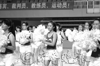 | 为迎接省十二届中学生运动会,开幕式表演者们正在紧张的进行彩排。 本报见习记者 谭正正 摄 |