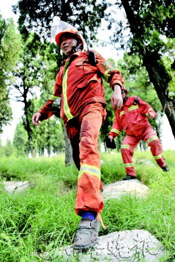 文/本报记者 李超 片/本报记者 王鸿哲 7月底以来,淄博不断遭遇“烧烤模式”,持续半月有余的雷阵雨始终也没能将高温带走。近几日,市气象台又接连发布高温黄色预警信号,室外最高温度甚至超过36℃。然而,在如此高温天气下,许多人待在空调房里都感觉闷热难耐,但护林员张义平上班时每天坚持巡山20多公里,守护着6000亩山林。 红黑色的脸膛,1米6、7左右的身高,但走起山路来疾步如飞。这位身材并不魁梧的巡山工就是张义平,他是淄川国有林场井筒林区的一名普通护林员,从1980年参加工作至今,他已经坚持了30多年,正常上班时每天巡山20多公里,风雨无阻。 10日上午10时左右,太阳早已高高挂上了枝头,此时的空气已经烤得人睁不开眼睛。可是张义平还是穿上了厚厚的工作服,做好准备工作开始巡山。“每次巡山,衣服都要被汗水浇透好几遍,往往裤子还没晒干,胸膛上又开始画起了‘地图’。”张义平用手胡乱抹了把脸上的汗珠对记者说道。 10日上午,记者一行来到张义平工作的林场,陪他一起走高温下的巡山路。刚一出门,火辣辣的太阳就已经将记者烤得大汗淋漓。张义平却说,这样的天气,他们早已习惯,同行的工友杨浩告诉记者,他们每天都要走四五个小时的山路,监测火情,查看树木病虫害。有人计算过,30多年来,他们巡山走的路加起来超过20万里,相当于绕地球两周半。 走了半个多小时的山路,张义平来到了一个悬崖下,悬崖上面建有一个 望哨,他们必须爬上去才能检测周围的火情。此时张义平和杨浩的衣服已经被汗水浇透,厚厚的工作服紧紧地贴在身上,他们随身携带的一大壶水也已经喝去了大半。 张义平告诉记者,每年的11月份到第二年的5月份是防火期,这段时间,必须24小时值班,一旦出现火情要及时扑灭。其他时间,虽然不需要24小时值班,但每天也必须要巡视一遍。有一次,张义平在巡视时,从望远镜里发现,远处的一处山林突然开始冒烟,他一边确认冒烟地点,一边用对讲机通知工友。由于发现及时,这才避免了重大火情的发生。 临近中午,太阳更加毒辣,此时张义平才巡视了一半的山林。他在 望哨用望远镜查看远处的情况,确认没有险情后,才稍作休息。 “渴了就喝自己带的凉开水,累了就倚在树下休息一会,高温天气,要时刻防暑啊!”张义平说,巡山的时候也得时刻防止中暑,因为一旦中暑便不能上山,更耽误工作。 由于经常走山路,张义平一个月就要穿坏一双鞋,至今他已经记不清穿烂了多少双鞋,磨烂了多少身工作服。 “既然选择了这项工作,就要热爱它,尽职尽责去做好,国家把这片山林交给我们看管,就决不能在我们手里出现问题。”张义平说,这段走了30多年的路,他还会一直走下去。