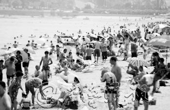 | 7月2日上午8点半,市区降下大雨,白昼如夜。(资料片) 本报记者 赵金阳 摄 |  | 8月6日上午,天气炎热,第一海水浴场爆棚(资料片)。 本报记者 赵金阳 摄 |