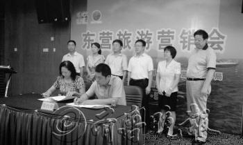 | 东营市旅行社代表与滨州市旅行社代表签署互送客源协议。