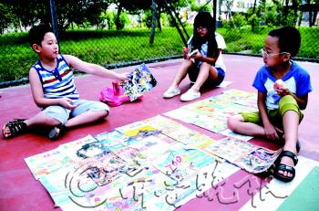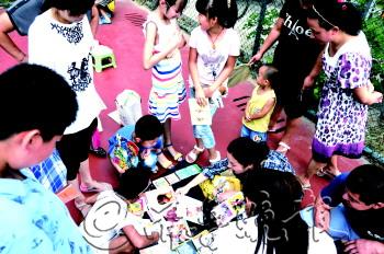 | 一位小朋友的摊位前挤满了换书的市民。本报记者 李岩松 摄 |  | 王大爷收藏的“古董书”十分吸引眼球。本报记者 李岩松 摄 |  | 两位小朋友正在交换图书。本报记者 李岩松 摄 |