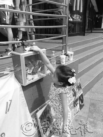 | ◥一个小女孩正在往募捐箱里投钱。(图片由志愿者提供) |