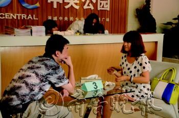 | 有不少市民是为子女来相亲的。 本报记者 张牟幸子 摄 |  | 一对男女在“八分钟约会”中聊得很投缘。 本报记者 王忠才 摄 |