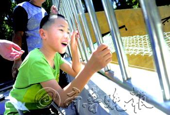 ◥第一次看到海狮,小哥俩兴奋地拍着巴掌。 本报记者 李泊静 摄 逛动物园时,哥哥刘学友就一直念叨着想坐海盗船,可真坐完后,下船时小哥俩都晕了,坐在树荫下休息了好一阵才缓过神来。 玩兴不减,哥哥休息了没几分钟就吵着要玩其他的游乐设施。顾不上一旁头晕的弟弟,哥哥又牵着爸爸的手坐上了美人鱼的旋转座椅。爬下美人鱼,哥哥又坐上儿童游览车,边做开车状边不断向爸妈挥手。 “有点晕了,休息一阵就好。”见其他小朋友在旋转木马上玩得高兴,哥哥刘学友又迫不及待地想去“尝尝鲜”,而一旁的弟弟刘学成则被海盗船折腾得兴致全无,任哥哥怎么劝说也不肯再动。 弟弟没精神,哥哥玩了一阵也停了下来。在碰碰车场上,哥哥终于劝动弟弟,一家四口齐上阵。尽管不懂得如何操作,但看着爸妈和哥哥撞来撞去,刘学成几度高兴地大喊出声,一局结束后又喊着要再玩一次。从碰碰车下来后,他还守在边上看了很久,迟迟不愿离开。 本报记者 孙淑玉 坐完海盗船,哥俩都晕了