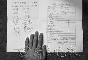 | 旅行社提供的先到乘客同意准时发车的签名表。 本报记者 陈文进 摄 |