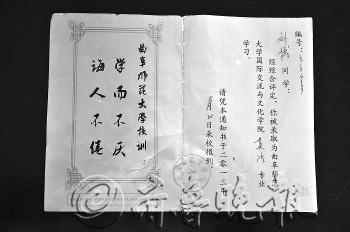 眼看报到日期就到了,通知书却还躺在长途汽车站的招领处,不少人为考生“刘博”捏了一把汗。 记者带着录取通知书,想要通过曲师大找到“刘博”时,却得到了另一个完全出乎意料的结果……