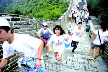 | ◤在八达岭长城,学子们争先恐后、你追我赶,争做爬长城的“好汉”。