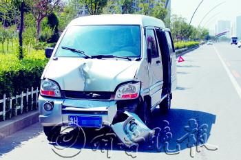 本报2110110消息(记者 岳茵茵) 21日,济宁城区火炬路南段一机械公司门口发生一起交通事故,一辆满载货物的货车倒车时,跟后面的面包车相撞,面包车头部被撞变形,所幸没有人员伤亡。 21日上午10点,记者赶到事发现场,事发面包车停在路东,车头严重变形,左侧车门被撞出一个大坑。旁边4个人坐在路边等待定损。 刘女士介绍,当时车上有4个人,他们是从汶上来济宁办事的,开车是一名中年男子,副驾驶上坐着一位少年,都是亲戚关系。 事发前,面包车自南向北正常行驶,突然前面一辆大货车像是走过了,闪着倒车灯往后倒车,面包车也跟着倒,但还是撞上了。 “应该是往路西机械公司送货的,货车司机发现走过了,想倒回来左转拐过去。倒车的力量很大,把我们的车往后推了20多米,车还没停稳,我打开车门跳了下来,跑过去告诉他停下来。”刘女士回忆说。 刘女士说,车上的人都吓坏了,车门变形,司机费了好大劲才出来,幸好没人受伤。 事发后,货车离开了现场,两车司机去辖区的交警队处理事故。 (奖励线索提供者刘先生50元)