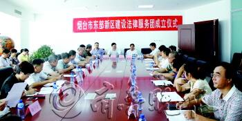 | 21日上午,烟台市东部新区建设法律服务团成立。 本报记者 王晏坤 摄 |