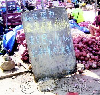 作品描述:摊主用了两个“全”来形容他的圆葱好,这种销售还真用心。