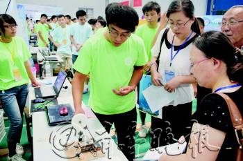 参赛学生在介绍自己的参赛作品。 韩洪烁 摄