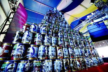 | 德国皇家伯爵大篷内的啤酒都产自德国。 本报见习记者 杨广帅 摄 |  | 德国皇家伯爵啤酒大篷的啤酒种类繁多。