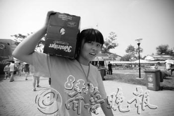 本报见习记者 杨广帅 摄 |  | 很多大学生趁着暑期前来啤酒城打零工。