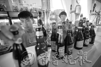 本报记者 张晓鹏 摄 |  | 为了多卖些酒,学生服务员经常一站就是一天。