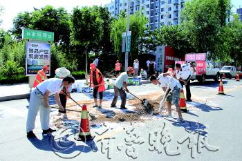 | 日照市环卫处组织人员及时清理路面上的油漆。