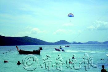 进入毕业季,我就和几个好姐妹策划我们的毕业旅行了。经过几番商议,最终确定了旅行地点——泰国普吉岛。 泰国签证比较容易办理,我们交给了旅行社帮签,护照加2张2寸证件照,不到一周就拿到了。由于我们不喜欢跟团,只在网上订了机票、酒店和落地接机拼车,从上海经过不到5小时的飞行,到达普吉国际机场。时差1小时,落地时间为当地凌晨1点多,地面气温为35℃,定位显示为北纬7.89°东经98.30°,我们就这么华丽丽地来到了赤道旁边! 在普吉,公共交通不是很便利,没有地铁,也没看到轻轨,没有站牌,公交车很少碰到,并且摆手可以随时上下车。最常见的交通工具是一种叫tuktuk的突突车,价格需要和司机面议。普吉的酒店非常多,各种档次的都有,想方便可以提前网上预订,想确保位置也可以落地再找。 从普吉岛开车一路向南,半小时左右到达码头。由于皇帝岛上没有大船可以停泊的港口,去皇帝岛只能乘快艇,约15分钟左右,先到达珊瑚岛。珊瑚岛由于开发比较完善,岛上娱乐设施也较多,可以游泳、潜水、玩降落伞、香蕉船之类,所以岛上游客比较多,中国游客尤其多。 放下去珊瑚岛的拼船友,继续开往皇帝岛。 在靠近皇帝岛的海域玩了浮潜。那片海底非常美,转不大的一圈就能看到不同颜色的巨大珊瑚,白色蓝色红色...鱼的种类特别多,各种颜色,看到一种蓝色的鱼,那个蓝色超级美! 浮潜完上岛时已近中午,感觉非常原始的岛,一切都很天然。一上岛我们就迷路了,走在这样的丛林里,没人可问路,也不知道该往哪走,当时的我们与其说毕业旅行,更像荒岛流浪。就在我们迷茫之际,来了辆吉普车,车斗上坐着几个穿着像巡岛人员的人,于是赶紧问路,没想到,他们竟然让我们上车,顺路把我们载过去。于是,我们很拉风地上了普吉车斗,很拉风地坐着普及车在 岛上兜风,简直帅翻了。 巡岛吉普把我们送到岛上的自助餐厅。没想到的是,饭后我们竟然又搭了辆更拉风的拖拉机去海边,心情靓暴! 来到海边,海水和沙滩真得非常赞,沙子又细又滑,踩上去很舒服,海水是种透明的绿色,非常干净。虽然沙滩边有棕榈树,但是中午阳光太烈了,依然没有什么阴凉地,要做好防暑防晒准备。 下午3点左右,众多型男美女纷纷从岛上别墅或酒店出来戏水晒太阳了,很是养眼。游客不是很多,欧美游客居多,大都会玩冲浪、晒日光浴,很是休闲。作为为数不多的中国游客,我们还开玩笑地玩了段中国功夫。 悠闲地在岛上待了一下午,虽然回码头时没搭上顺风车只得步行,但却碰到了蜥蜴和水牛;虽然被晒地黝黑,但仍无限怀念。 (游客 阚乐乐 记者 杨青 整理)