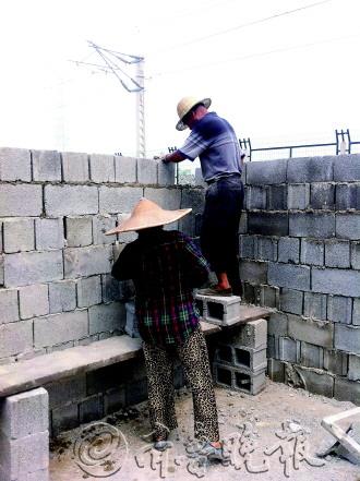时间:2013年7月13日 地点:薛城区 自述:虽然是大中午,两名工人仍然在工地上奋力施工,修建围墙。 作者:刘亚东