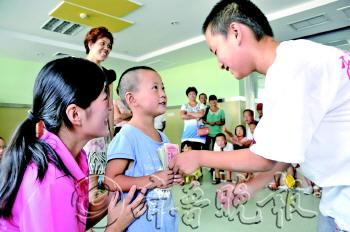 21日,本报报童营销秀二期70多名小报童和40多位报童家长走进聊城儿童福利院看望福娃,他们带去1000多元报纸义卖款和众多玩具、书籍、零食等。 本报记者 邹俊美 摄