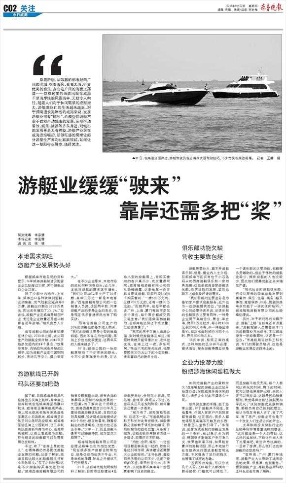 游艇业缓缓“驶来” 靠岸还需多把“桨”