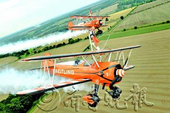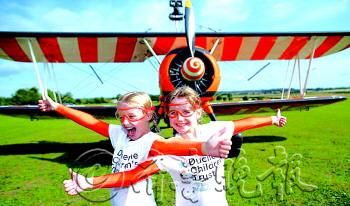 两架老式螺旋桨飞机一同飞行在空中,相距咫尺,让看到的人不禁捏一把汗。仔细看,每架飞机的机翼上竟然还站着一个小小的身影!两个小朋友看起来悠然自得,在空中翩翩起舞。 这对姐妹花只有9岁。两人用这场令人咋舌的表演打破世界纪录,成为世界上年龄最小的机翼行走表演组合。她们说,表演是为了帮一名病重的小伙伴筹款。 “特别特别好玩” 她们是来自英国的表姐妹罗丝·鲍威尔和弗拉姆·布鲁尔。两人被安全装置固定在祖父的古董双翼飞机上,以每小时160公里的速度飞过格洛斯特郡上空。 驾驶两架飞机的分别是她们的祖父维克·诺曼和当地一名资深飞行员。 飞行结束后,鲍威尔说:“这次飞行太神奇了,很难用语言描述。我们就好像鸟儿一般翱翔天际,感觉很酷。从天上往下看,房子就像乐高积木那样小。我开始还有点害怕,但后来,喜悦战胜了一切。” 英国《每日邮报》21日引述她的话报道:“飞行时特别冷,我到现在还不停地颤抖,不过能完成这次飞行很开心,真想再来一次。” 布鲁尔也说:“特别特别好玩,风非常非常大。” “我为她们感到骄傲” 鲍威尔和布鲁尔出身于机翼行走表演世家,是家族中的第三代传人。 祖父诺曼说,他对这次表演一点儿也不紧张,因为当时天气情况十分理想。“我肩负双重责任,因为机翼上站着的是我的孙女们。我更担心的是她们能否享受飞行过程。虽然她们从3岁起,每年都会要求站上机翼,但我总跟她们说‘不行’。”“她们这次要求机翼行走时依然遭到我拒绝,但她们说,‘爷爷,我们有一个朋友得了一种可怕的病,人们对这种病所知甚少,所以我们想做些什么唤起大家的注意。’她们给我讲了朋友的故事,我说,‘好,那我投降,我们就来一次。’” 诺曼说:“这就是我为她们感到骄傲的原因——她们发自内心地想这样做。年仅9岁的小女孩有这种帮助他人的想法,让我感觉很惊喜。” “帮助埃利做点事” 两个小姐妹口中的重病朋友名叫埃利·克罗斯利,现年6岁。他患上一种名为“杜兴氏肌肉营养不良”的病,这种病由X染色体上的基因缺陷造成,属隐性遗传疾病,患者以男孩居多。 患者骨骼肌萎缩,无药可治。大多数患者会在20岁左右因心脏或呼吸系统衰竭而亡。 克罗斯利的父母为孩子成立“杜兴氏儿童基金”,向各界寻求物质与医疗援助。 鲍威尔说:“像埃利(克罗斯利)这样的小伙伴,越长大越无法完成在我们眼里理所当然的事,这真令人恐惧。能帮助埃利做点事情令我很开心。希望有更多人能知道杜兴氏儿童基金。” 据新华社