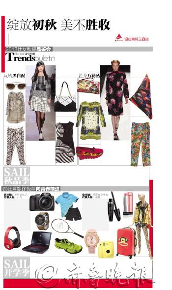 PORTS PORTS DILAKS dosai DAZZLE MY FENO IFIF FAIRWHALE 播 虽然有首歌叫做白天不懂夜的黑,但黑和白在时尚界就像是相亲相爱的亲密爱人,在即将到来的2013秋冬季,黑白配色成为最意料之中的流行色彩,格纹、波点、无论怎么配,都是2013秋季最闪亮的潮流看点。 oin&beale 花朵最能表达女性的风情和浪漫情怀,2013秋季,瑰丽的花朵图案、迷幻民族风印花、趣味十足的复古花……都在传达着鲜明的时尚态度,高雅浪漫的大花朵、温婉秀气的小花朵,让你像鲜花一样盛开! 2013秋季新款仕女装8折起;部分品牌两件以上折上折;23-25日在3F仕女商场部分品牌实付满999/1999/2999获赠精美礼品 □相关活动: 贝斯琦2013秋季新品发布会静态展+小提琴演奏+冷餐会 活动时间:8月24日下午14:00—15:30 活动地点:3楼中厅VIP区 当日15:00-17:00贝斯琦全场5-7折限时抢购 □女装反季特卖 颠倒四季 为你美丽——罗伯特歌美貂皮2折起(特卖地点:3F仕女商场);敦奴1折起、无色无味1折起、舒朗3折起、伊可爱1.5折起、高歌2折起、索玛时3折起、雪儿3折起 (特卖地点:B1鞋区特卖场) “终于接到了属于我的录取通知书,告别“读书郎”时代了,大学生活对我来说,除了学业,一定要做自己喜欢的事情,比如,我一直想学习的网球,我一直最爱的摄影,而且,我可不可以拥有代表自己品味的东东呢,手表或是一款超酷的笔记本电脑!” YONEX 尼康 SUUNTO 蜜丝佛陀 露华浓