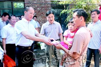 本报8月22日讯(见习记者 贾文圆 通讯员 刘学谦 成红园) 本报8月9日E05版以《小姐弟双双患罕见粘多糖病》为题,报道了平安街道东潘村村民李延军因家庭贫困,无力支付孩子巨额手术费用的事情。见报后,长清区众多爱心企业伸出援手,其中山东环球医药集团为李延军一家送来一万两千元的救助金,而长清区畜牧兽医信息中心也送来5000元的慰问金。 20日上午,山东环球医药集团的代表来到东潘村的李延军家中,为李延军一家送来了12000元的救助金及救助品。 “我们从《今日长清》上,看到李延军家里的不幸遭遇后,立即决定进行救助。主要就是想尽点企业的微薄之力,帮帮这个困难家庭。我们的企业在长清,能为长清区做点事情,也是我们企业的责任。”山东环球医药集团的相关负责人说。 据了解,山东环球医药集团在得知李延军一家的事情之后,立即决定从公司救助金中拿出6000元,公司领导和员工捐款6000元,共计12000元救助李延军。 接受捐款后,李延军忍不住流下了眼泪。他表示,他们全家都非常感激山东环球医药集团,会永远记住这份恩情。 李延军告诉记者,自从两个孩子患粘多糖病的事情见报后,长清区和济南市的很多好心人都打来电话慰问,有些好心人还送来了捐款,村里不久前也为两个孩子举行了募捐活动。 “长清区畜牧兽医信息中心全体员工还伸出援手,筹集了5000元钱,并直接打到了我的账户上。”李延军说。 为给小儿子治病,前一段时间李延军已经在北京做了配型,但配型并未成功。过几天,李延军的妻子也将去做配型,如果配型成功的话,就马上做手术,但手术费需要60万,我们希望更多的好心人能伸出援助之手。