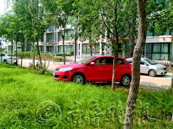 | 在福泰小区东区,个别车辆停在了绿地上。 本报见习记者 赵克 摄 |