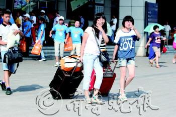 22日上午,烟台海军航空工程学院和南山学院的第一批新生走出火车站,也是今年驻烟高校的第一批新生抵达烟台。新生乘学校的接站班车赶往各个校区。来自微山留庄的李梦颖和满金凤两位南山学院新生到站后,对烟台充满好奇。