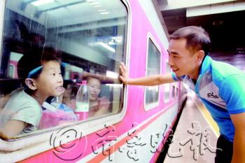 过完处暑,终于要和今年这个漫长而炎热的夏天说声再见了。8月22日,很多在暑期来烟游玩的旅客纷纷背上行囊,携妻带子,踏上了归家路。徐州、天津、石家庄、西安,做生意的、旅游的、探亲的、休假的……人来人往,缘起缘聚。在全国十大避暑胜地中排名第一的美丽烟台,也终将告别这整夏如织的人潮,有太多的美好回忆,更有太多的难舍难离。 “最喜烟台的晚风,最爱烟台的夜色。”济南小伙儿郑根楼,爱极了烟台的夏夜。每次到烟台出差,他都喜欢约上伙伴晚上出去转一转。21日晚,在火车站候车,闲暇之余,他们不进大厅,而是坐在火车站的天台上,一边聊天一边再欣赏一下烟台的夜景。“看着城市万家灯火,聊聊工作和生活,吹吹舒适的晚风,感觉什么烦恼都没有了。”郑根楼说,每到离开就格外舍不得,“但是我一定还会再回来。” 在火车站,记者遇到了即将离开的来自石家庄的崔腾文和薛智恒,两个小朋友扮演着海贼王的角色,在候车大厅里玩得很是欢乐。从来没见过大海的他们,第一次在烟台感受到了海的魅力。“海竟然那么大,海水竟然那么咸。”崔腾文手舞足蹈地描述着对海的认识,他还对大大小小的船只着了迷,“如果有机会,我还想回来冲浪,但是下一次,一定不要再喝海水了。” 老家在安徽蚌埠的王永贵,已在烟台工作了好多个年头。每年,他只有春节才能和家人长时间团聚。今年夏天,王永贵的妻子和妹妹带着放了暑假的儿子女儿来烟台看他,顺便过了一个“最清凉的夏天”。“他们都说儿子长得像我。”王永贵看着车窗里朝他伸出小手的儿子,心里是浓浓的不舍,“下次再见面,只好等过年了。”这样说着,他伸出手,隔着玻璃贴在儿子的小手上,满脸的爱怜与不舍。“这里比老家凉快太多了。”王永贵说,家里人都十分喜欢烟台的气候和大海。这一个多月来,他利用周末的时间带着家人走遍了烟台的景点,到处留下与家人在一起的温馨回忆。 “爱在烟台,难以离开。”这几乎是每一个即将踏上离程的人由衷的慨叹。 本版图片由本报记者韩逸、高绪亮拍摄