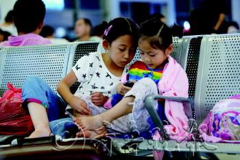 | ▲来自石家庄的小游客崔腾文在烟台见识到了海的魅力。要离开烟台了,调皮的他一刻也不安分,爬到候车室的座椅下面玩耍起来。 |  | ▲王永贵的妻儿趁着暑期来看他,夏天结束了,妻儿踏上回家路。火车开动前,王永贵伸出手,隔着玻璃和儿子告别,脸上充满爱怜和不舍。 |  | ▲图为来自苏州的三位表演者,结束了烟台的演出,他们将踏上归程。临别前,3位表演者在候车大厅拍照留念。 |  | ▲来烟出差数日的济南小伙郑根楼最爱烟台的夜景。马上要回去了,等车之余,他和同来的伙伴坐到车站的天台上,最后再看看烟台的万家灯火。 |  | ▲马上要坐车回家了,在火车站候车室,两位小游客拿出相机,再看一遍在蓬莱阁留的影像,还真有些离愁别绪呢。 |