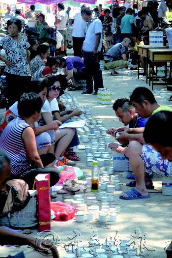8月20日,来客在买卖蟋蟀。 本报记者 王金强 摄