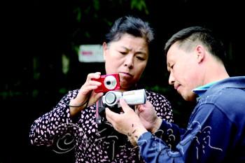 自述:男士操作摄像机,女士手持照相机,相互配合密切。
