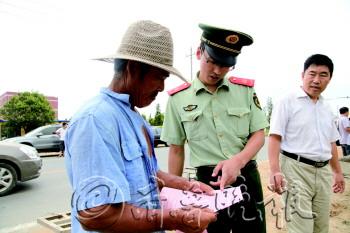 8月22日,为确保日照市辖区内长途干线光缆安全,日照市传输局会通济南军区司令部信息化部日照通信连、日照公安局治安支队和日照市边防派出所等单位对沿线进行走访宣传,并对沿线相关单位和群众分发了明白纸,旨在进一步提升沿线相关单位和广大群众的自居护线意识,做好通信光缆保护工作。图为,工作人员对沿线群众光缆保护相关知识。