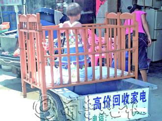 作品描述:孩子若无其事地站在“回收家电”的车上。