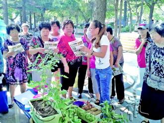 22日,环翠楼办事处西门外、同德社区工作人员邀请花艺专家来到骆驼公园,为社区居民教授阳台花艺栽培等知识,丰富居民知识和生活。