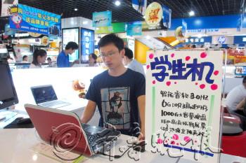 张店柳泉路上一科技产品商场内商家打出“学生机”招牌。 本报记者 王鸿哲 摄