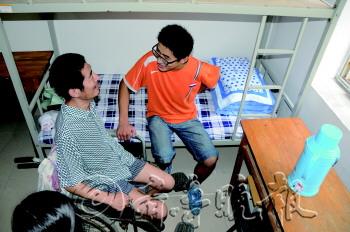 | ▲云龙和爸爸对于英才学院宿舍的环境很满意。 |  | ▲众媒体采访云龙和他爸爸 |  | ▲学校志愿者帮云龙爸爸抬轮椅。 |  | ▲在好心人帮助下,云龙要去上学了。 |  | ▲前几天,云龙还在为无法上学的事情发愁。 |  | ▲好心人将云龙的爸爸抬上车。 |  | ▲2012年11月,因无钱交学费,云龙父亲着急地哭了。 |