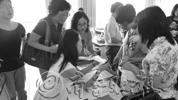 | 23日,第二十二届全国中学生生物学竞赛在济南落下帷幕。图为清华大学教授在接受咨询。 本报记者 周青先 摄 |