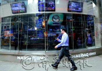 | 8月22日,一名行人经过位于美国纽约时报广场的纳斯达克交易所。 新华/路透 |