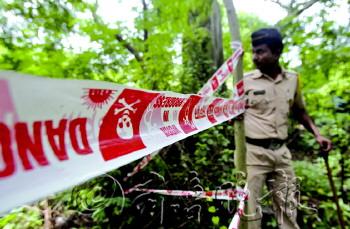 | 8月23日,印度警察在孟买的强奸案事发现场调查。 新华/美联
