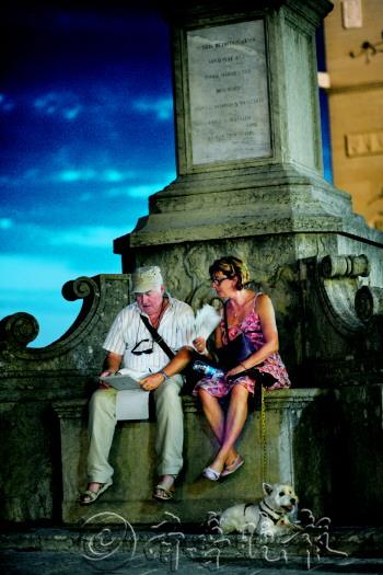 | ▲疏懒的少女手拿扇子望着门外,不知是什么吸引了她的目光。 |  | ▲一名中年男子坐在自家店铺里若有所思,充分享受属于自己的时光。 |  | ▲一位老人走出家门在路边喝杯咖啡看看杂志,生活可以慢慢地去品味。 |  | ◥夜幕下,一对出门遛狗的老年夫妇在广场雕塑下休息。 |  | ◥正式的音乐会看上去却像朋友间的party,处处洋溢着轻松愉悦的气氛。 |