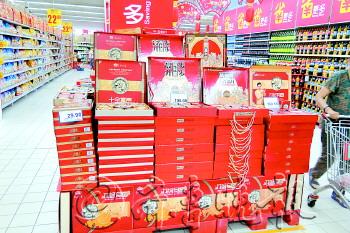 | 今年月饼明显的特点就是“亲民”,天价月饼不再随处可见,月饼礼盒也多为中低价位。 本报记者 赵伟 摄 |