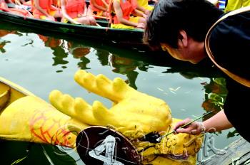 ◥幸运市民为龙舟点睛。